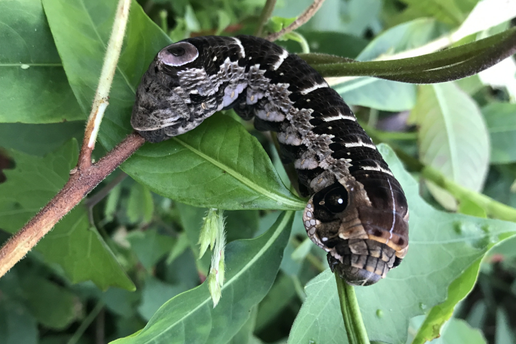 A Eumorpha labruscae consegue simular um olho piscando em sua falsa cabeça de serpente (Foto: mssjordan – iNaturalist)
